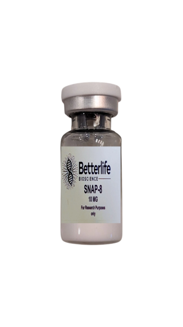 SNAP-8 is a synthetic anti-aging peptide that is primarily used in topical skincare products (serums, creams, etc.). It is a shorter, modified fragment of a larger and more well-known peptide called Argireline (Acetyl Hexapeptide-3 or -8).